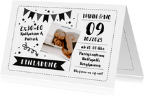 Einladung Zum Doppelgeburtstag Schwarzweiss Fur Kaartje2go